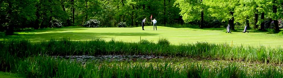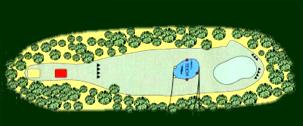 Ein Par 3 mit einme Teich vor dem Green,